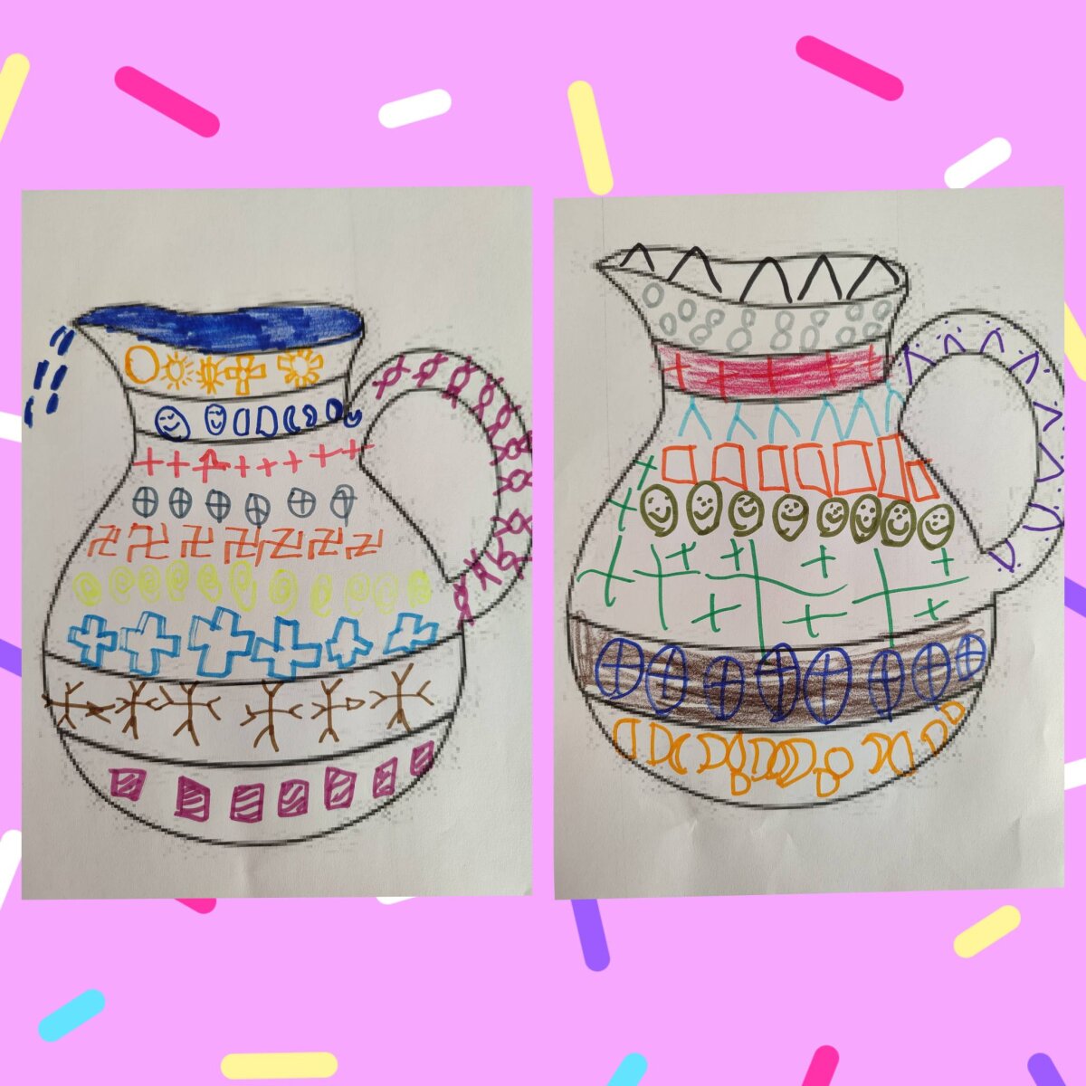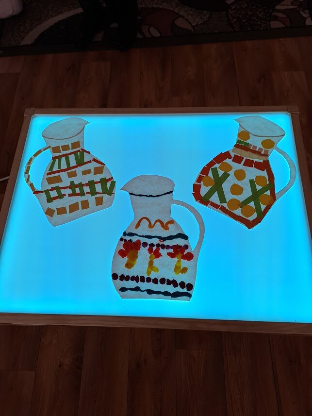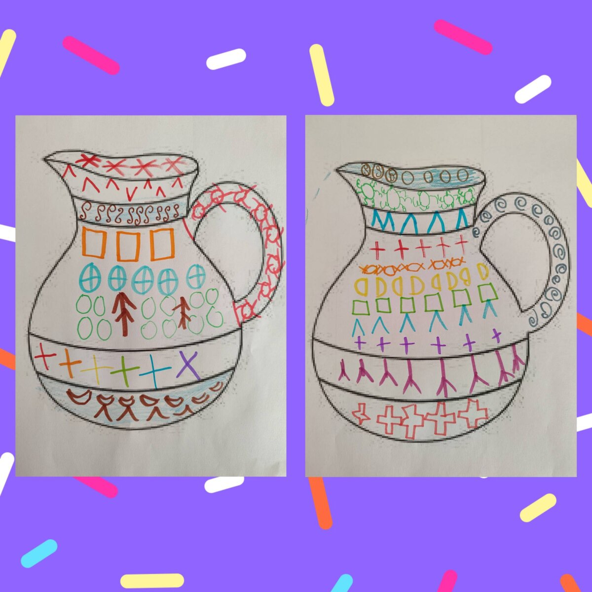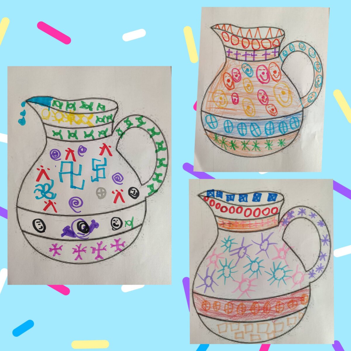 Projekto metu vaikai tyrinėjo, kaip iš paprasčiausių elementų – taško, linijos ir geometrinių formų – gimsta raštas. Kurdami ir dekoruodami įvairių daiktų siluetus (juostas, prijuostes, puodelius, ąsočius, lėkštes ir kt.), ugdytiniai lavino meninius gebėjimus, kūrybiškumą bei matematinį mąstymą, susipažino su simetrija, pasikartojimu ir formų derinimu.
